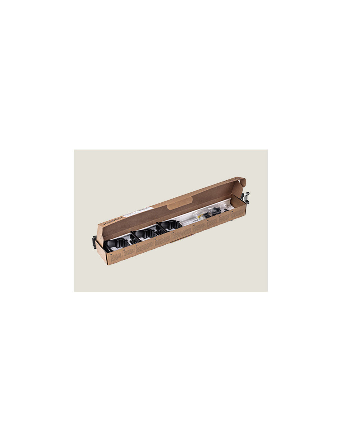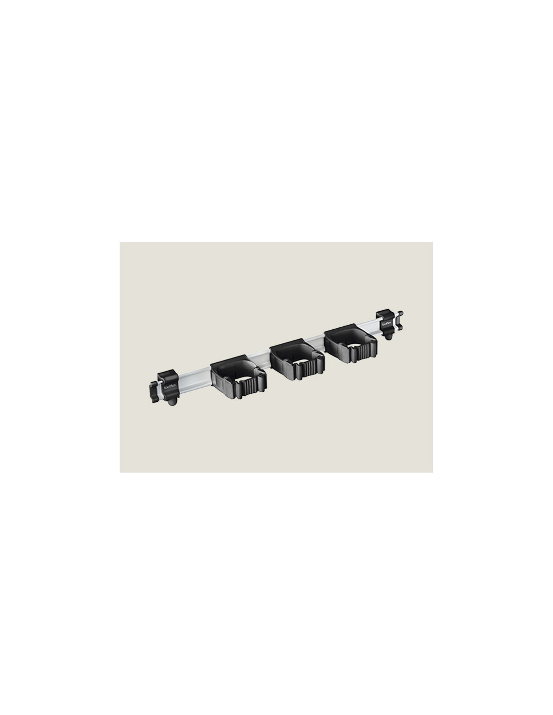 Rail Toolflex One 54 cm con 3 colgadores universales (negro). Sistema de organización profesional diseñado para ofrecer una sujeción firme y mantener herramientas y utensilios siempre ordenados. Su rail de 54 cm incluye tres colgadores universales que se adaptan a mangos de distintos diámetros, garantizando estabilidad y facilidad de uso.