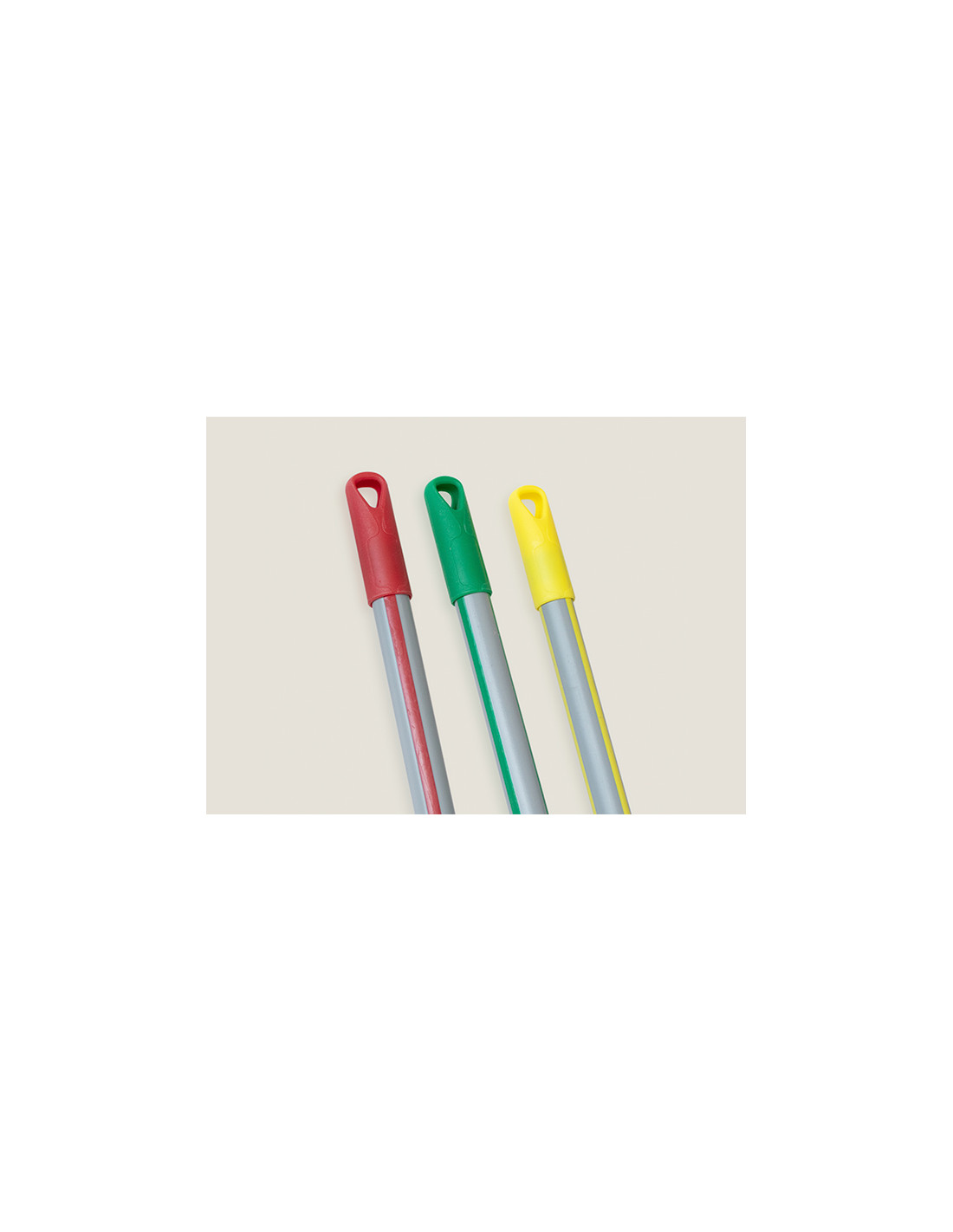 El palo antideslizante definitivo. Con las finas líneas de goma, se agarra perfectamente a tus manos, haciendo más sencilla y cómoda la limpieza. Perfecto tanto para el sector doméstico, como para el sector profesional. Ya que se pueden utilizar según el código de colores. Rojo, para zonas de alta carga bacteriológica. Baños, urinarios, etc. Verde, para zonas donde se manipulan alimentos, cocinas, despensas, etc. También para utilización en quirófanos. Amarillo, para zonas de baja carga bacteriológica. Lavabos, duchas, etc.