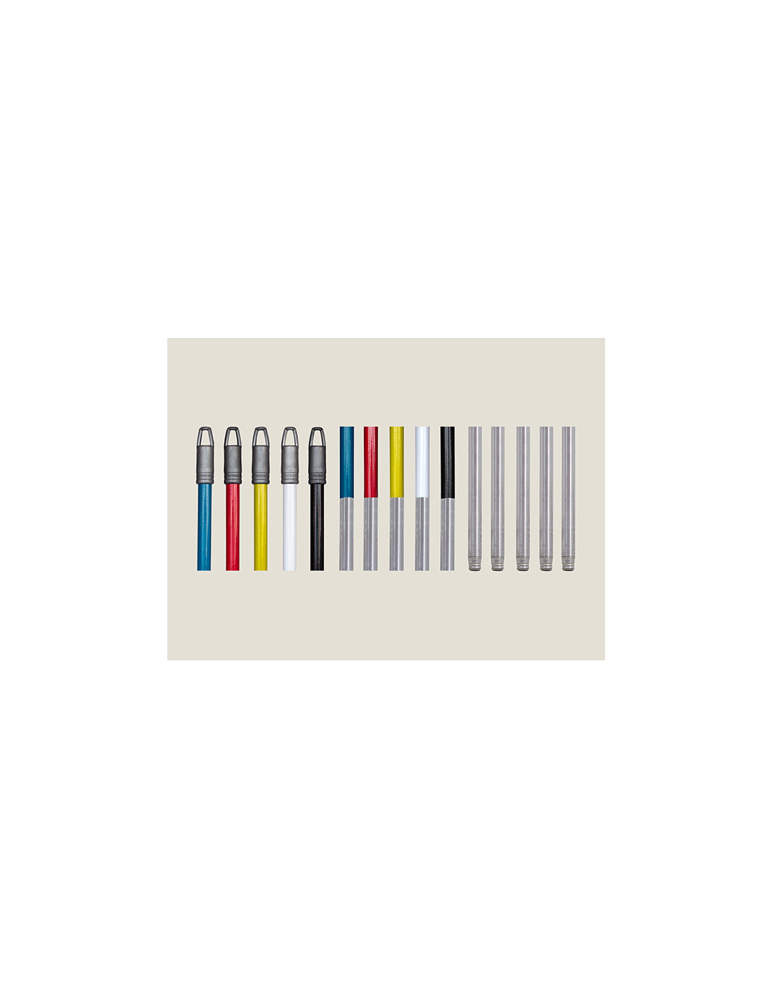 Palos de aluminio anodizado de 1,40 m. Muy adecuados para uso doméstico. Con gran variedad de colores, tanto para combinarlos, como para diferenciar las zonas de limpieza.