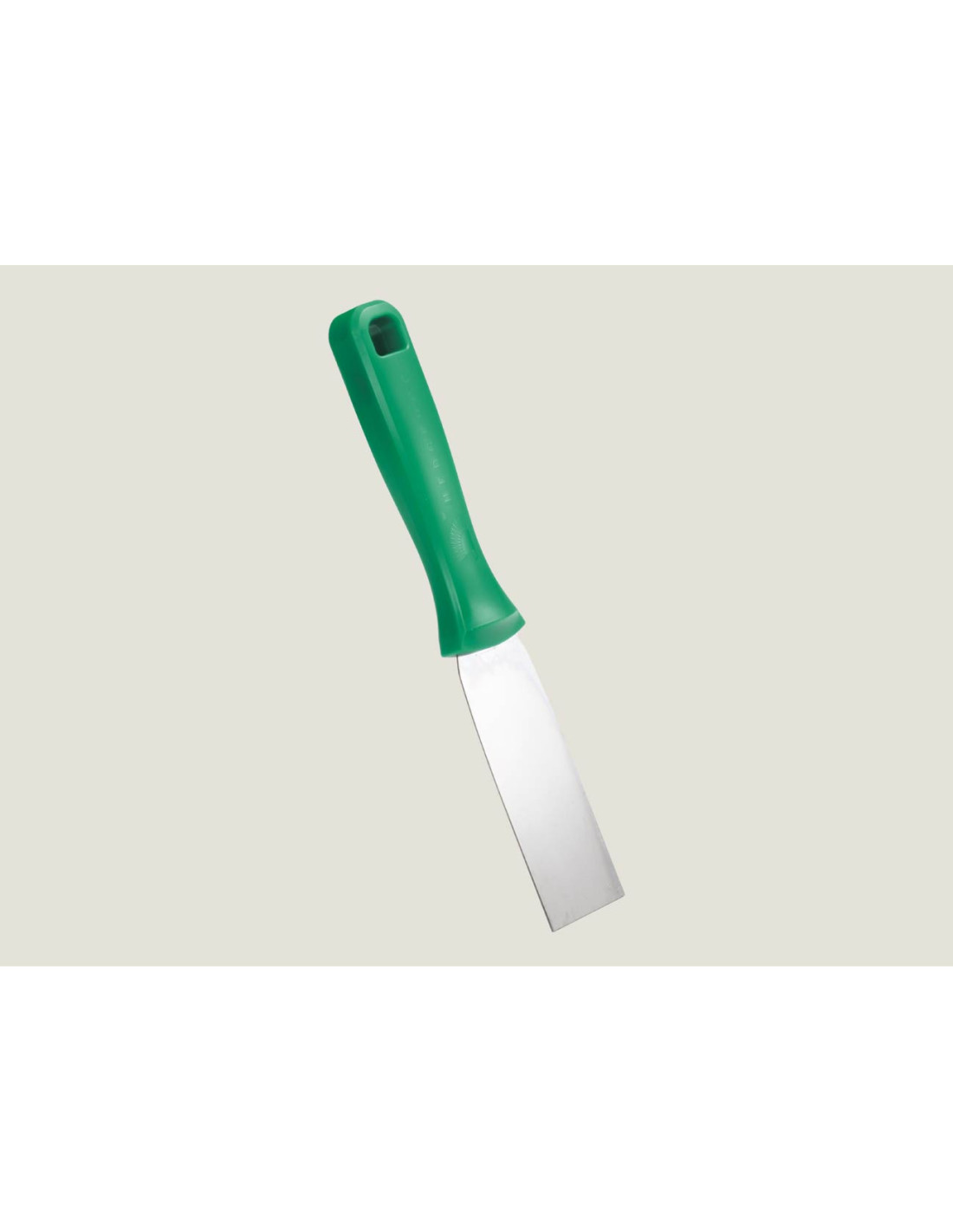 Espátula de acero inoxidable Hedgehog 38 mm, diseñada para ofrecer precisión y resistencia en trabajos de cocina. Su hoja de 0,5 mm de grosor permite manejar y desprender con facilidad alimentos pegajosos, garantizando un desempeño práctico y eficiente.